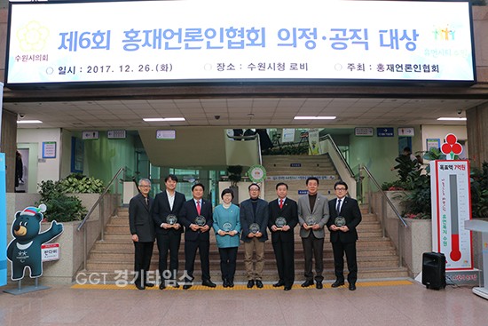 [경기타임스] 제6회 홍재의정대상의 영광은 경기도의회 김호겸(더민주, 수원6) 부의장, 박옥분(더민주, 비례) 의원, 수원시의회 노영관(국민당, 영통1·2·태장동), 유재광(한국당, 구운·입북동), 이철승(더민주, 매교·매산·고등·화서1·2·서둔동), 조석환(더민주, 원천·광교1·2동), 홍종수(한국당, 영화·연무·조원1동) 의원에게 돌아갔다.
