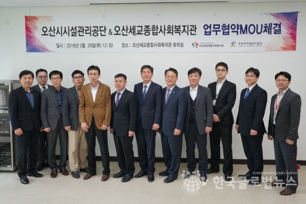 세교복지타운에서 진행된 이번 협약식은 조용호 오산시시설관리공단 이사장, 강대봉 오산세교종합사회복지관 총괄관장 등 양 기관 주요관계자 20여명이 참석한 가운데 진행되었다.
