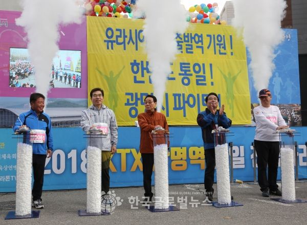 한편 이날 KTX광명역에서 열린 통일전국마라톤 대회에는 4천여명이 참가했으며, 이 대회를 처음으로 만든 양기대 후보도 함께 5km 단축 마라톤에 참여했다.