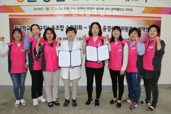 이날 정책협약식은 학교비정규직 노동자의 정규직화와 노동인권이 보장되는 인간다운 삶을 위해 마련했다.