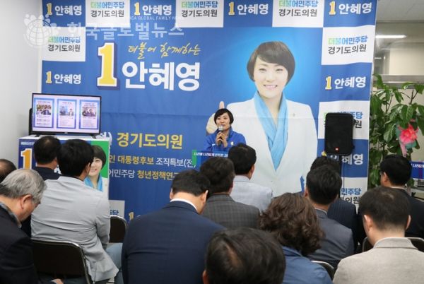 3선에 도전하는 안혜영 더불어민주당 경기도의원 후보는 22일 오후 영통구 영통동 디지털엠파이어Ⅰ에 마련된 선거사무소에서 개소식을 열고 필승을 다짐했다.