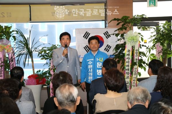 문병근 더불어민주당 수원시의원 후보는 25일 오후 권선동 이마트 수원점 맞은편 선거사무소에서 개소식을 열고 필승을 다짐했다.