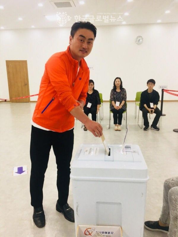 홍성규 민중당 경기도지사 후보는 사전투표 첫날인 8일 오전 8시, 수원시 매산동주민센터에서 사전투표에 참여했다.