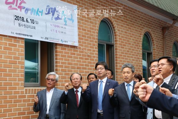 염태영 더불어민주당 수원시장 후보는 10일 오후 동수원감리교회에서 열린 ‘제31주년 6.10민주항쟁 기념식’에 참석했다.