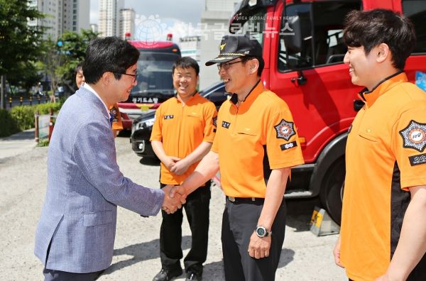 염 시장 후보는 “지난해 12월 25일 광교신도시 오피스텔 화재 사고로 많은 사상자가 발생했다. 특히 우리 소방관 2분이 화상을 입어 다치는 일이 발생했는데 안타까웠다”며 위로하고 “국민의 생명과 재산을 지키기 위해 목숨을 담보로 업무를 진행하는 만큼, 늘 성실함과 당당함으로, 나아가 각 개인의 건강을 챙기시는데도 소홀함이 없었으면 한다”고 당부했다.