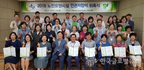 수원시는 26일 팔달구 수원시장기요양지원센터에서 노인 인권을 보호하는 역할을 하게 될 ‘노인요양시설 인권지킴이’ 45명을 위촉했다.