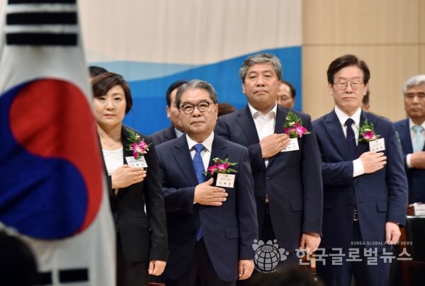 제73주년 광복절인 15일 오전 경기도경제과학진흥원 경기홀에서 순국선열과 애국지사의 넋을 기리는 광복절 경축행사가 열렸다.