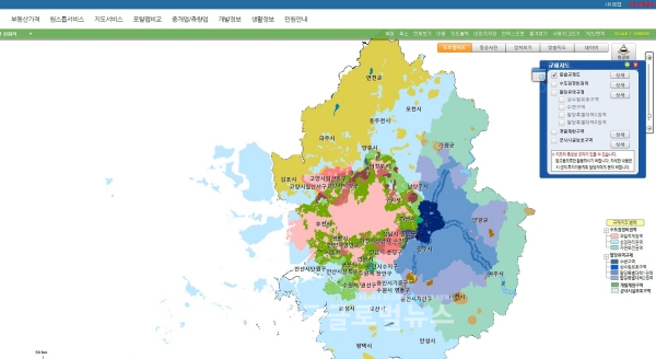 이와 별도로 경기도 전역의 규제현황을 한 눈에 확인할 수 있는 규제지도 서비스도 22일부터 제공된다. 기존에는 책자로만 규제현황이 제공돼 도민들이 쉽게 규제현황을 알 수 없었다. 부동산포털을 사용하면 도 전역의 규제현황은 물론 수도권규제, 팔당유역규제, 개발제한구역, 군사시설보호구역 등 각각의 규제지역과 규제 내용을 한눈에 알 수 있다.