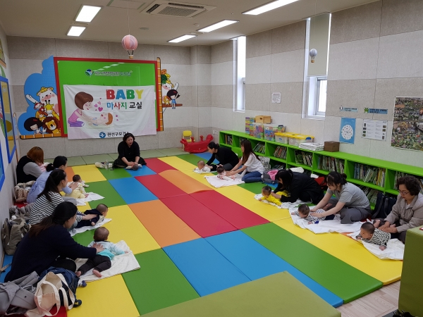 9월과 11월에는 매주 화요일 오전 10시와 오후 2시에 두 차례 ‘베이지 마사지 교실’이 열린다. 엄마와 생후 2~7개월 영유아가 함께 참여하는 프로그램으로, 전문 강사가 영유아의 발·다리 성장점 마사지, 좌뇌·우뇌 자극 마시지 등 다양한 베이비마사지 방법을 알려준다.