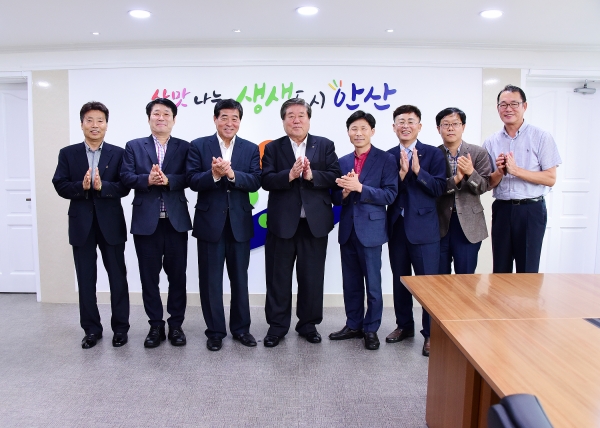 윤화섭 안산시장은 시화지구 대송단지 현안 사업 논의를 위해 지난 8월 30일 시장 집무실에서 최규성 한국농어촌공사 사장과 면담을 가졌다.