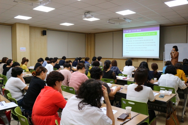 이날 초빙된 대한지역사회영양학회 김부경 강사는 위생적인 식품 보관 방법 및 재고관리, 올바른 개인위생의 중요성에 대해 재차 강조 하였다. 또한, 다양한 자료와 결과를 토대로 알맞은 영양 급식 및 올바른 위생관리, 안전 급식 실천방안을 중점적으로 어린이 집단급식의 종사자가 이해하기 쉽도록 안내 하였다.