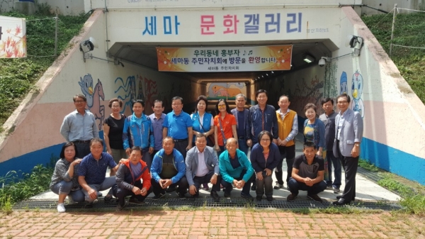 세마동 주민자치회는 지난해 안양2동과 세종시 부강면 주민자치회의 벤치마킹에 이어 여러 주민자치회에서 벤치마킹을 오고 있으며, 이번 벤치마킹은 촉박한 일정이지만 양산동 지하보도 벽화그리기 사업 현장을 방문하여 특별함을 더했다.