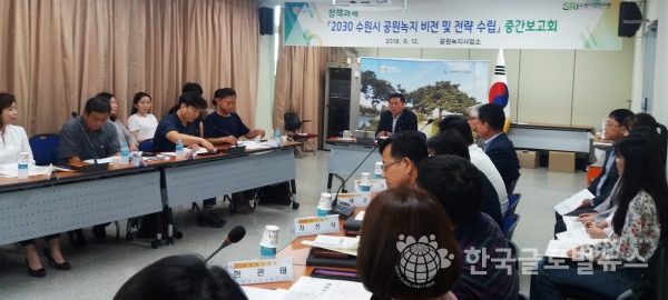 수원시 공원녹지사업소는 12일 권선구 공원녹지사업소 중회의실에서 ‘2030 수원시 공원녹지 비전 및 전략 수립을 위한 정책과제 중간보고회’를 열고, 비전·전략 수립 추진 현황을 점검했다.