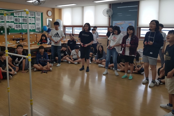 수업에 참여한 학생 17명은 드론의 종류와 활용방법, 구성 부품들을 이해하는 시간을 가졌다.