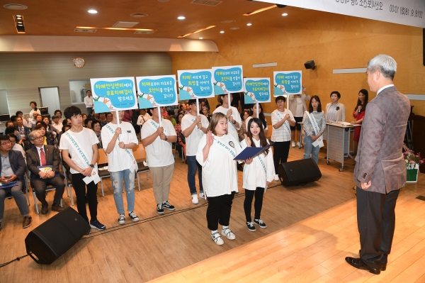 치매극복의 날 기념식은 오산건강지기의 오산건강체조와 오산시자원봉사센터의 오카리나 오프닝 공연을 시작으로, 치매 지역사회협의체 위촉식, 치매극복선도학교(오산대학교 실용사회복지과) 학생들의 치매파트너플러스 발대식을 진행하였다.