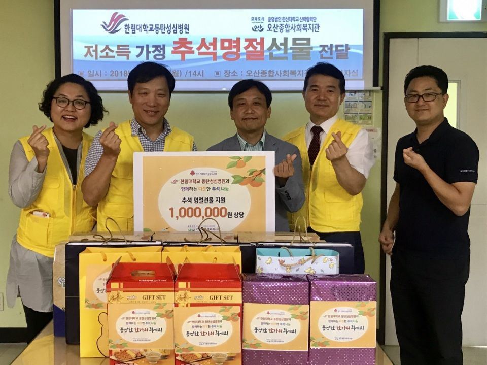 이번 나눔활동에는 레이언스, 삼성전자(기흥캠퍼스), SK케미칼, 한림대학교 동탄성심병원, 국민건강보험공단 오산지사, 1%이웃사랑 실천모임에서 총 450만원 상당의 물품을 후원하였으며, 각 기업체 및 단체에서 직접 후원물품 전달 활동에 참여하였다. 그 중 ㈜레이언스 김태우 대표이사와 임직원들은 명절음식을 직접 만들어 우리지역에 독거어르신 가정에 방문하여 명절인사와 음식을 나누는 뜻 깊은 시간을 가졌다.