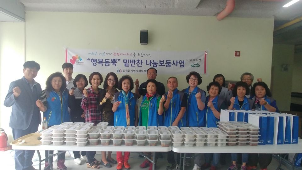 주민 스스로가 이웃을 직접 돌보는 ‘마을돌봄사업’을 추진하기 위하여 2014년에 구성한 신장동 지역사회보장협의체는 신장동만의 특화된 다양한 복지사업을 기획 및 추진하고 있으며,‘행복듬뿍 밑반찬 나눔보듬 사업’은 월 1회 지역사회보장협의체 위원들이 직접 식재료를 구입하고 밑반찬을 조리하여 신장동 관내 취약계층 30세대의 집을 방문하며 밑반찬을 전달하고 안부를 확인하는 등 복지사각지대 해소를 위해 노력하고 있다.
