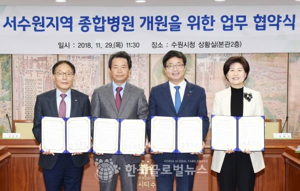 수원시와 의료법인 덕산의료재단, 한국농어촌공사, 백혜련(수원시을) 의원이 서수원지역 종합병원 개원을 위해 적극적으로 협력하기로 했다.