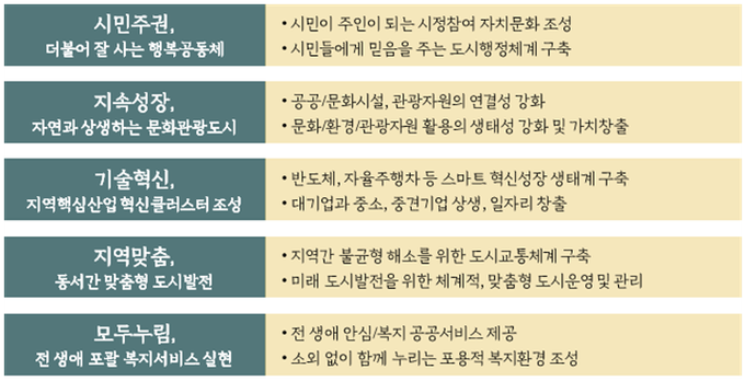 지역특성, 잠재력에 대한 분석을 통한 향후 100만 대도시로서의 위상에 걸맞는 발전적 전략 수립과 시민들의 수요를 적극적으로 반영할수 있는 시민과 함께 만드는 Bottom-up형태의 장기발전 계획을 수립하게 된다.