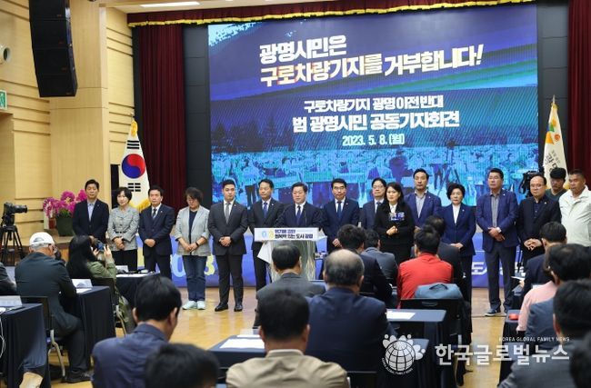 광명시는 8일 광명시청 대회의실에서 ‘구로차량기지 광명 이전 거부 범 광명시민 공동기자회견’을 갖고 끝까지 차량기지를 거부하겠다고 선언했다.