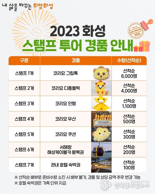 (한국글로벌뉴스 - 박소연 기자) 화성시가 5월부터 오는 10월까지 열리는 주요 축제를 대상으로 ‘축제 시즌제 스탬프투어’를 진행한다.