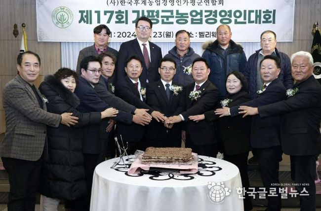 (한국글로벌뉴스 - 박소연 기자) (사)한국후계농업경영인 가평군연합회와 가평군은 23일 벨리웨딩하우스에서 ‘제17회 가평군 후계농업경영인대회’를 개최했다. 이번 행사에는 서태원 가평군수, 김경수 가평군의회 의장과 군의원, 임광현 경기도의원, 유관기관 단체장, 후계농업경영인 및 가족 등 200여 명이 참석했다.