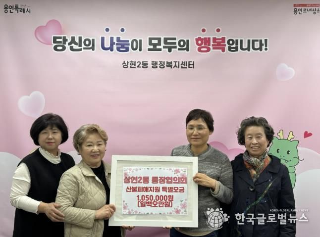 (한국글로벌뉴스 - 박소연 기자) 용인특례시는 산불로 피해를 입은 영남지역 주민들을 돕기 위한 용인시민들의 따뜻한 나눔이 이어지고 있다고 3일 밝혔다. 상현2동, 남사읍, 죽전2동의 주민들과 주민 단체는 자발적으로 성금을 전달해, 국가 차원의 피해 복구 지원에 동참하며 희망의 손길을 전했다.