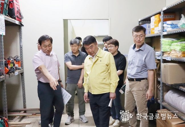 첫 일정으로 황 구청장은 수해 피해에 다소 취약한 인덕원동, 관양동, 비산2동 행정복지센터에 직접 방문했다. 관계 부서와 함께 수방자재 보관상태, 양수기와 엔진펌프 등 기기 정상 작동 여부, 창고 정리상태 등을 점검하고 풍수해 재난은 신속한 대응이 중요함을 강조하면서 대응체계 점검을 지시했다.