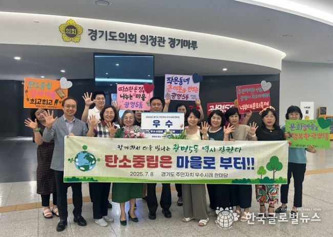 (한국글로벌뉴스 - 박소연 기자) 광명시 광명5동 주민자치회가 ‘2025년 경기도 주민자치 우수사례 한마당’에서 우수상을 수상하며 주민 주도 탄소중립 사업의 우수성을 인정받았다. 이에 따라 우수사업비 500만 원을 확보했다.