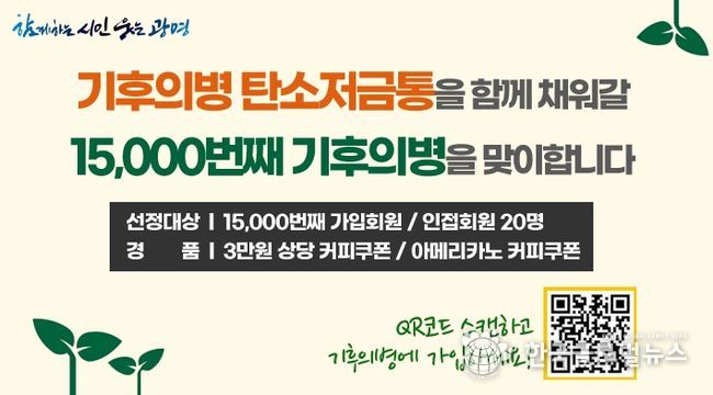 (한국글로벌뉴스 - 박소연 기자) 광명시가 1만 5천 번째 기후의병에게 3만 원 상당의 커피 상품권을 증정하는 이벤트를 실시한다고 12일 밝혔다.