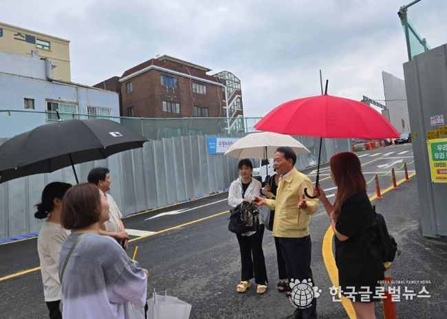 (한국글로벌뉴스 - 박소연 기자) 비가 부슬부슬 내리는 날 뉴타운 공사로 인하여 아이들이 통학로에 위험이 노출되어 있다고 민원이 들어와서 급하게 광명남초 후문통학로 현장에 나가서 학부모들, 학교 관계자 그리고 시청관계자, 공사현장 소장, 및 안전보안관까지 참여하여 현장회의를 가졌다.