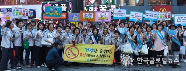 (한국글로벌뉴스 - 박소연 기자) 광명시는 지난 21일 광명경찰서와 협력해 흡연으로 인한 민원이 자주 발생하는 철산역과 철산상업지구 일대에서 공공장소 금연문화 확산을 위한 합동 거리 캠페인을 실시했다.