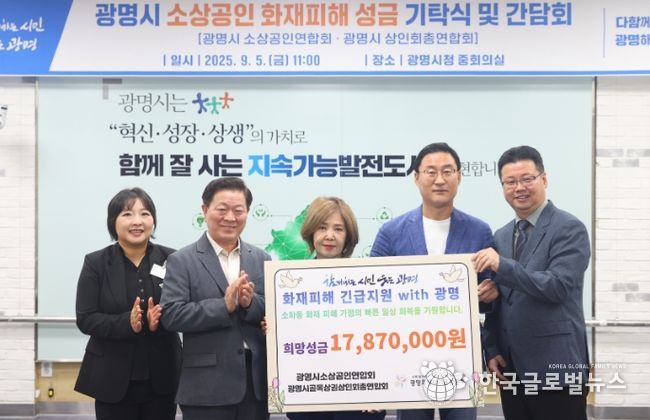 (한국글로벌뉴스 - 박소연 기자) 광명시 소상공인들이 지난 7월 발생한 소하동 아파트 화재로 피해를 입은 주민들을 위해 모은 성금 1천 800여만 원을 기탁했다.