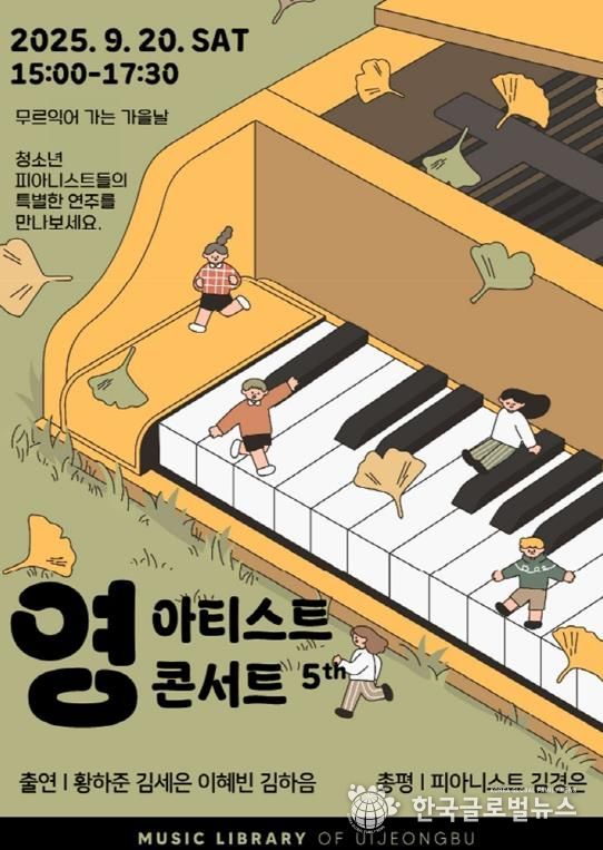 (한국글로벌뉴스 - 박소연 기자) 의정부음악도서관은 9월 20일 오후 3시 ‘제5회 영아티스트 콘서트’를 개최한다.