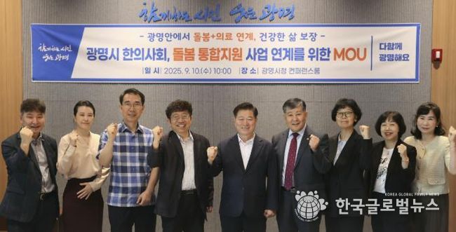 (한국글로벌뉴스 - 박소연 기자) 광명시와 광명시한의사회가 손잡고 돌봄과 의료를 잇는 돌봄통합지원 체계를 강화한다.