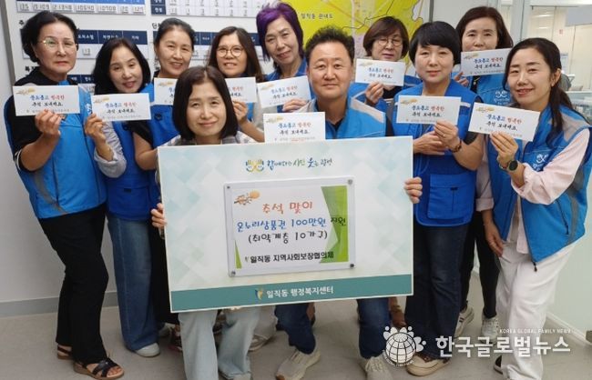 (한국글로벌뉴스 - 박소연 기자) 광명시 일직동 지역사회보장협의체는 지난 22일 추석 명절을 맞아 관내 독거노인, 장애인, 한부모가정 등 저소득 취약계층 10가구에 온누리상품권 100만 원을 전달했다.