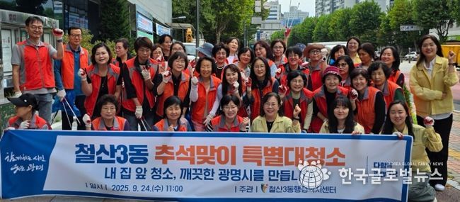 (한국글로벌뉴스 - 박소연 기자) 광명시 철산3동 행정복지센터는 지난 24일 추석을 앞두고 ‘대한민국 새단장 캠페인’의 일환으로 대청소를 실시했다.