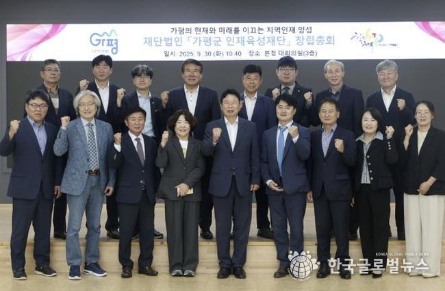 (한국글로벌뉴스 - 박소연 기자) 가평군이 9월 30일 군청 대회의실에서 재단법인 가평군 인재육성재단 창립총회를 열고 지역 미래교육의 새로운 전기를 마련했다.