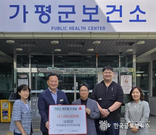 (한국글로벌뉴스 - 박소연 기자) 가평군 가평읍 소재 새희망마취통증의학과의원이 집중호우로 피해를 입은 주민들을 돕기 위해 성금 100만 원을 가평군에 기탁했다.