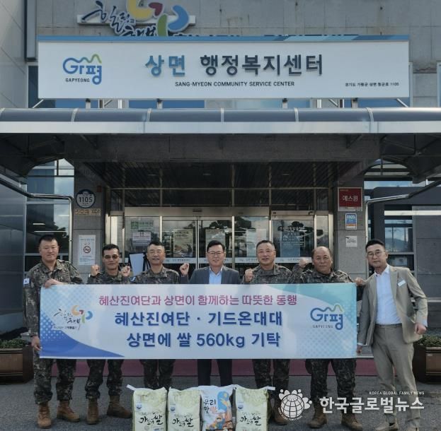 (한국글로벌뉴스 - 박소연 기자) 육군 수도기계화보병사단 주임원사 2명은 최근 임무교대식 때 축하 화환 대신 받은 쌀 560kg을 가평군 상면 행정복지센터에 기부했다.