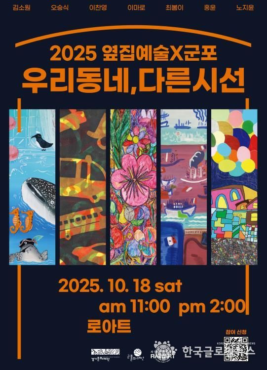 (한국글로벌뉴스 - 박소연 기자) 2025 옆집예술 ‘우리동네, 다른시선’은 지역 장애 예술가의 작업공간을 시민에게 열어 창작 과정을 공유하고 교감하는 사업으로, 오는 10월 18일 로아트 스튜디오에서 진행된다.