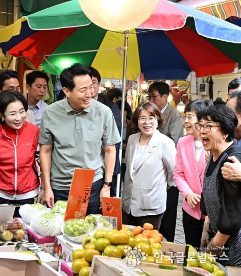 (한국글로벌뉴스 - 박지형 기자) 오세훈 서울시장은 2일 오후 구로구 소재 고척근린시장(구로구 고척동 253-122)과 강서구 남부골목시장(강서구 화곡동 943-7)을 차례로 찾아 성수품 수급, 가격 동향 등을 살피고자 민생현장을 점검했다.