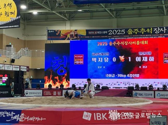 (한국글로벌뉴스 - 박지형 기자) 울산 울주군에서 3년 만에 열리는 전국 씨름대회 ‘위더스제약 2025 울주추석장사씨름대회’가 2일 삼남읍 울주종합체육센터에서 성대한 막을 올렸다.