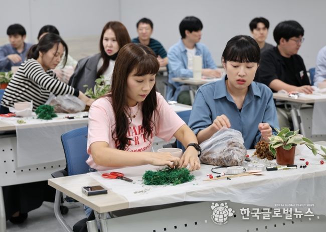 외부 강사 초빙해 식물을 이해하고, 임직원들이 직접 꾸미며 ‘나만의 작은 정원’을 완성하는 과정 속에서 참여자들은 긴장 완화·정서적 안정·몰입에 따른 스트레스 해소 효과와 성취감을 느낄 수 있었다.