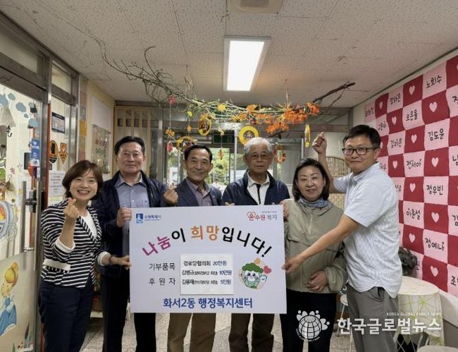 (한국글로벌뉴스 - 박소연 기자) 수원특례시 화서2동은 지난 10월 2일, 화서2동 경로당협의회가 민족 대명절 추석을 앞두고 지역의 어려운 이웃을 위해 현금 20만원을 기부했다고 밝혔다.