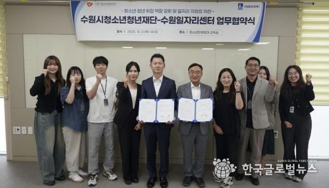 (한국글로벌뉴스 - 박소연 기자) 수원시청소년청년재단과 수원일자리센터는 10월 2일, 청소년청년의 취업 역량 강화와 일자리 지원을 위한 업무협약(MOU)을 체결했다.