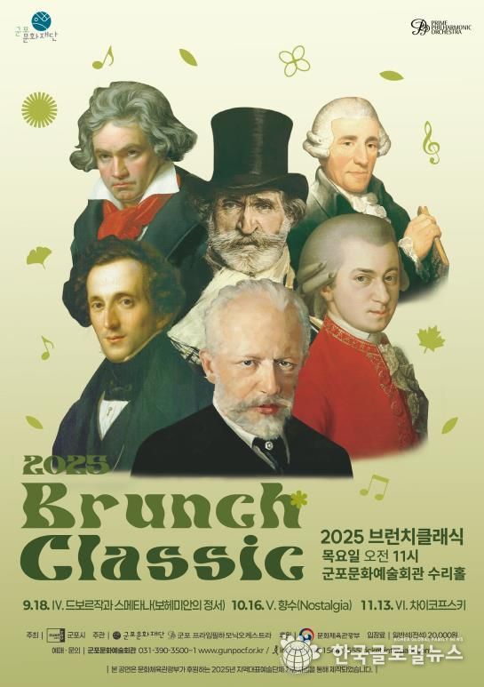 (한국글로벌뉴스 - 박소연 기자) 군포문화재단은 오는 10월 16일 오전 11시, 군포문화예술회관 수리홀에서 ‘2025 브런치클래식’의 다섯 번째 공연을 개최한다.