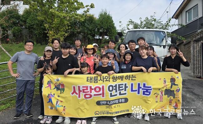 (한국글로벌뉴스 - 박소연 기자) 안성시동부무한돌봄네트워크팀은 지난 11일 태룡사 신도 20여명과 함께 난방 취약계층 8가정에 4,000장 연탄 나눔을 진행했다.