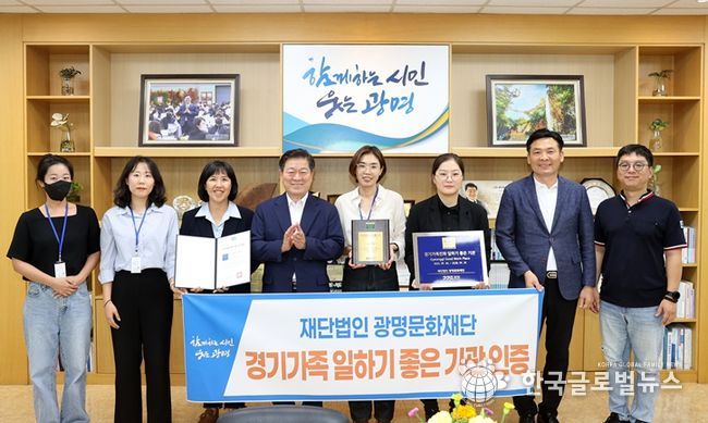 (한국글로벌뉴스 - 박소연 기자) (재)광명문화재단은 가족친화적인 조직문화 조성과 복지 제도 운영의 우수성을 인정받아, 경기도로부터 ‘2025년 가족친화 일하기 좋은 기업’ 인증을 받았다.