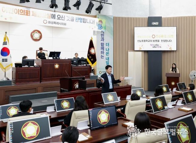 (한국글로벌뉴스 - 박소연 기자) 화성특례시의회는 13일, 남양읍에 위치한 신남초등학교 학생들을 대상으로 ‘어린이의회 체험 교실’을 운영했다.